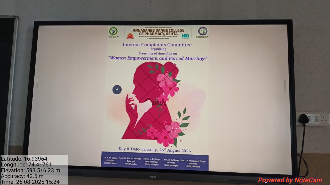 Women’s Equality Day Day under the aegis of Internal Complaint Cell (ICC) and Gender Sensitization cell on Tuesday, 26th August 2025 screening of a short film highlighting the issues of Women Empowerment and Forced Marriage. on the occasion Women’s Equality Day a Rangoli Competition organized with the theme “Women Empowerment and Equality on 26th August 2025